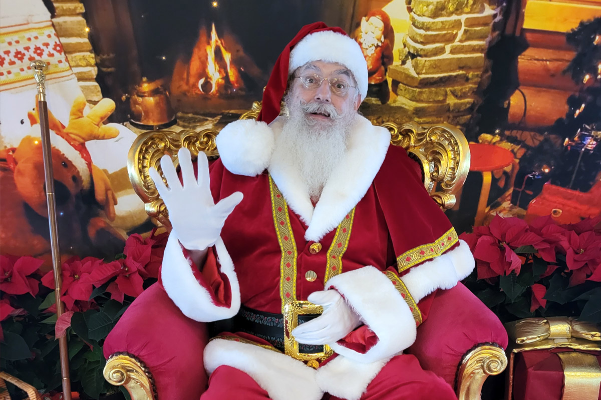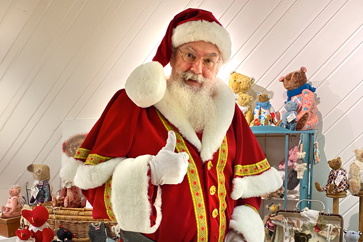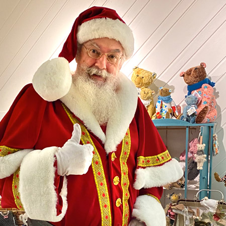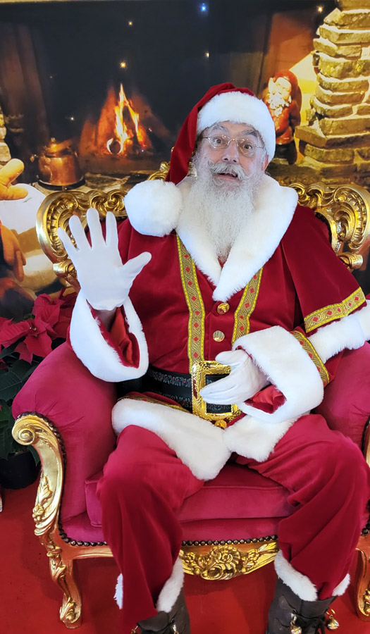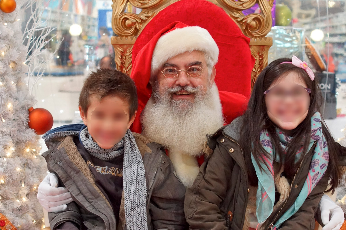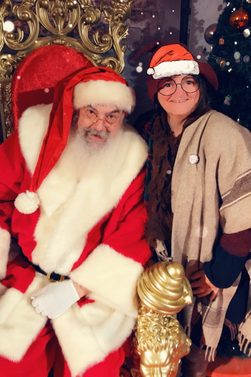 Je joue ce rôle depuis 2014. Avec ma barbe et mes cheveux blancs naturels, les enfants sont persuadés de rencontrer enfin le père Noël *en vrai !* Mon costume de luxe en velours épais avec fourrure blanche et galons brodés de fils d'or leur plait énormément. J’aime les enfants et j’ai toujours une relation douce et teintée de magie avec eux, adaptée à leur âge, sans exclure une certaine complicité avec les parents !